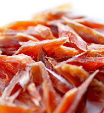 「鮭とば」とは鮭の半身を細長く切ったものを塩で味付けして乾燥させた、北海道や東北地方に伝わる伝統的な保存食です。知床産の天然鮭を使用したこの鮭とばは、昔ながらの製法にこだわり、余計な添加物を一切使用せず塩のみで味付けをした一品となっております。ちょっとしたおやつやお酒のお供に、また旅行の道中などにもどうぞ。